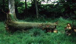 When a tree falls down nature can be allowed to take its course and the rotted wood eventually goes back into the land. Whilst it's rotting down it can become the home to a mass of fungi (see our fungi page) However when trees have become unsafe they must be felled.