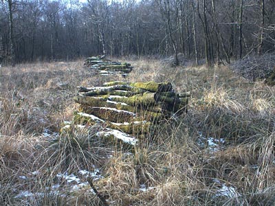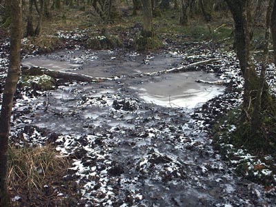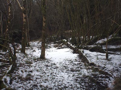 A Walk in February Field Five is mainly woodland. Parts of it are very wet, particularly the area around the ditch on the south-west side. |