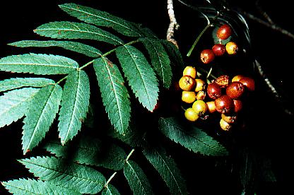 Rowan or Mountain Ash (Sorbus aucuparia) Rosaceae The berries on the Rowan are beginning to ripen. |