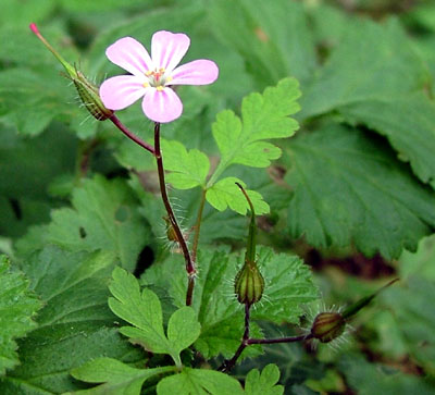 In the woods its still possible to find the occasional flower. This is Herb Robert (Geranium Robertianum) |