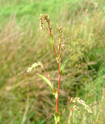 This is Water Pepper (Persicaria hydropiper - polygonaceae) which can be seen growing in clumps around the field. |