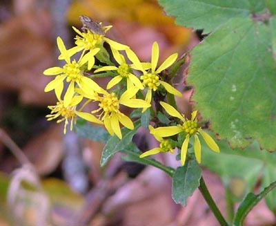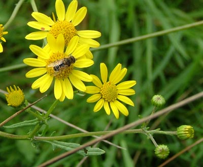 The sunlight has brought out the hoverflies, this one is on Marsh Ragwort (Senecio aquaticus - Compositae) |
