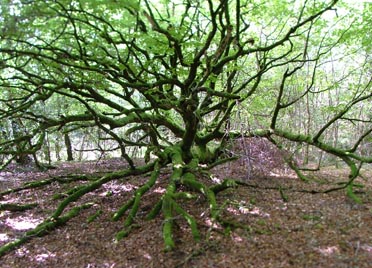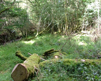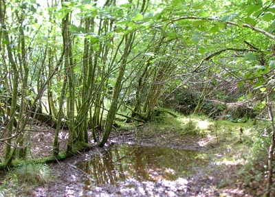 | The water is beginning to fill this area. Sometimes its up to welly-top height. The branches on the left of the pictures are called "sunshoots". The main branch has fallen down but the fresh growth heads for the sunlight. |