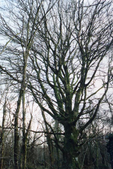 At the bottom of field six we have some beautiful large beeches. Sadly, many of them were toppled over in a north-westerly gale several years ago. However, this one still stands and is a magnificent sight even in winter. In 2009 our friend Jenny Russell helped us to measure it. We found it had a girth of 11"3 or 343cms at a metre high and 11"9 or 360cms. at about 2 metres high. |